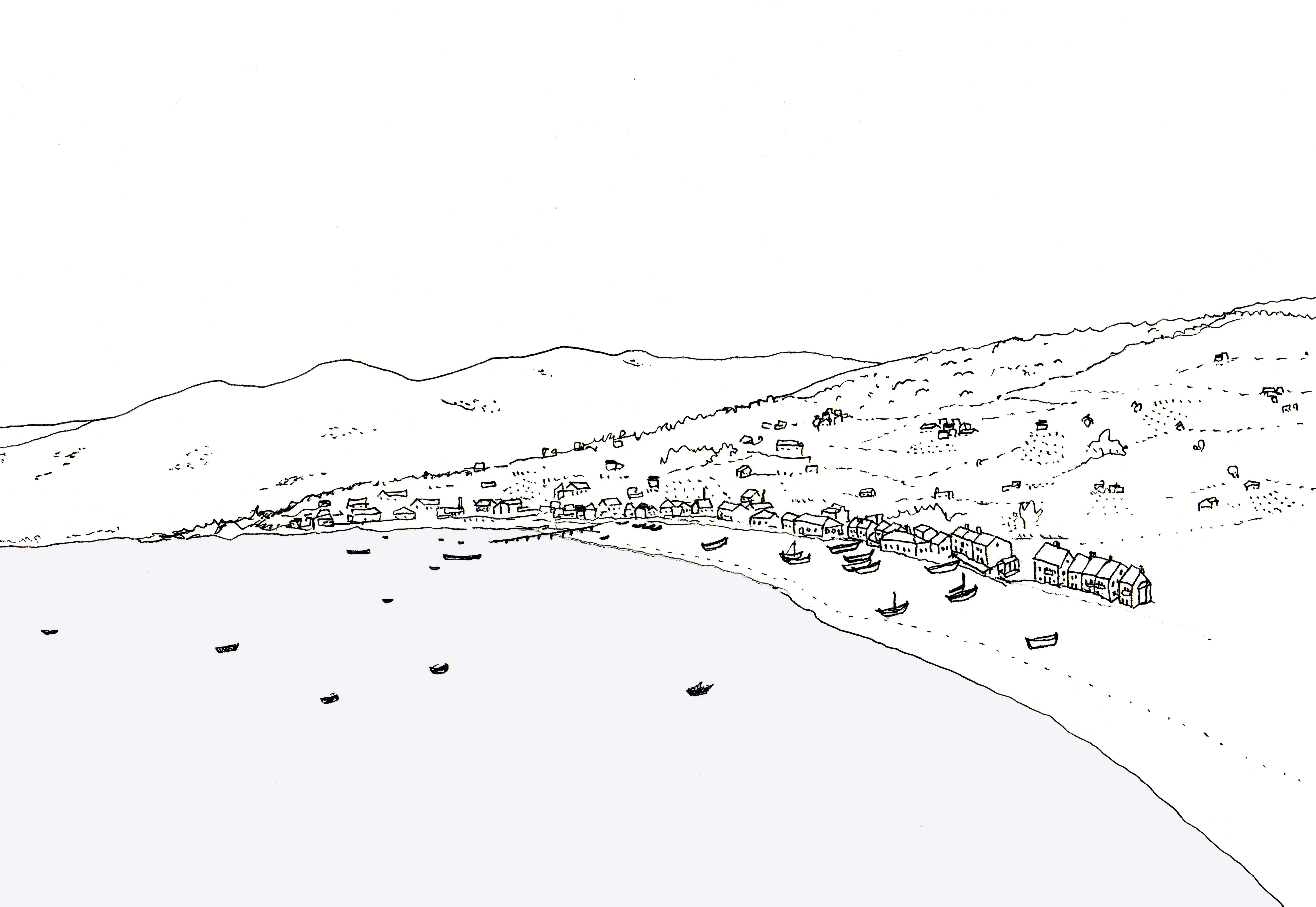 Como parte de la exposición colectiva ‘A permanencia do invisible’, realicé una serie de dibujos sobre la memoria de Bueu, en origen un pequeño pueblo de pescadores en la costa gallega.