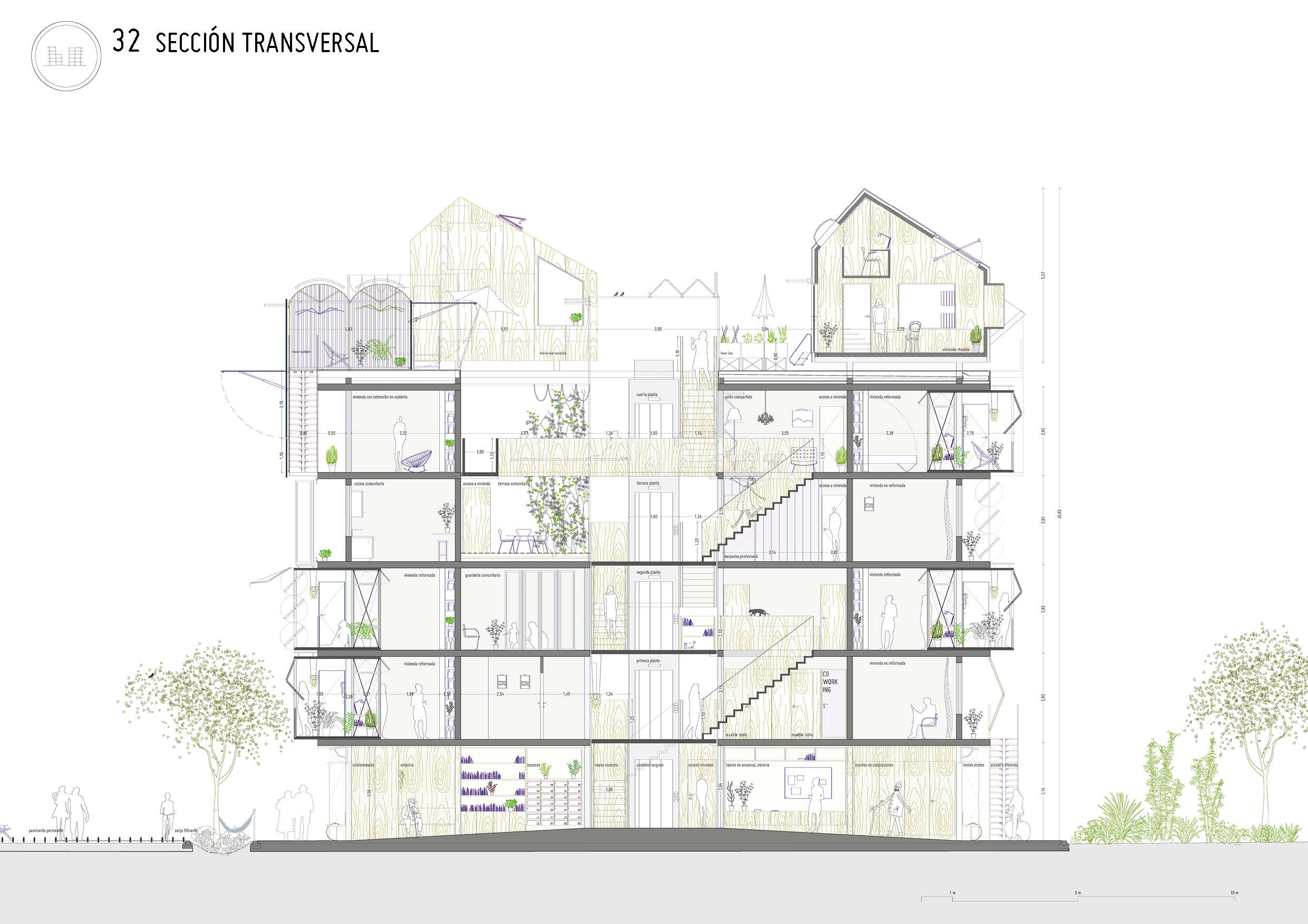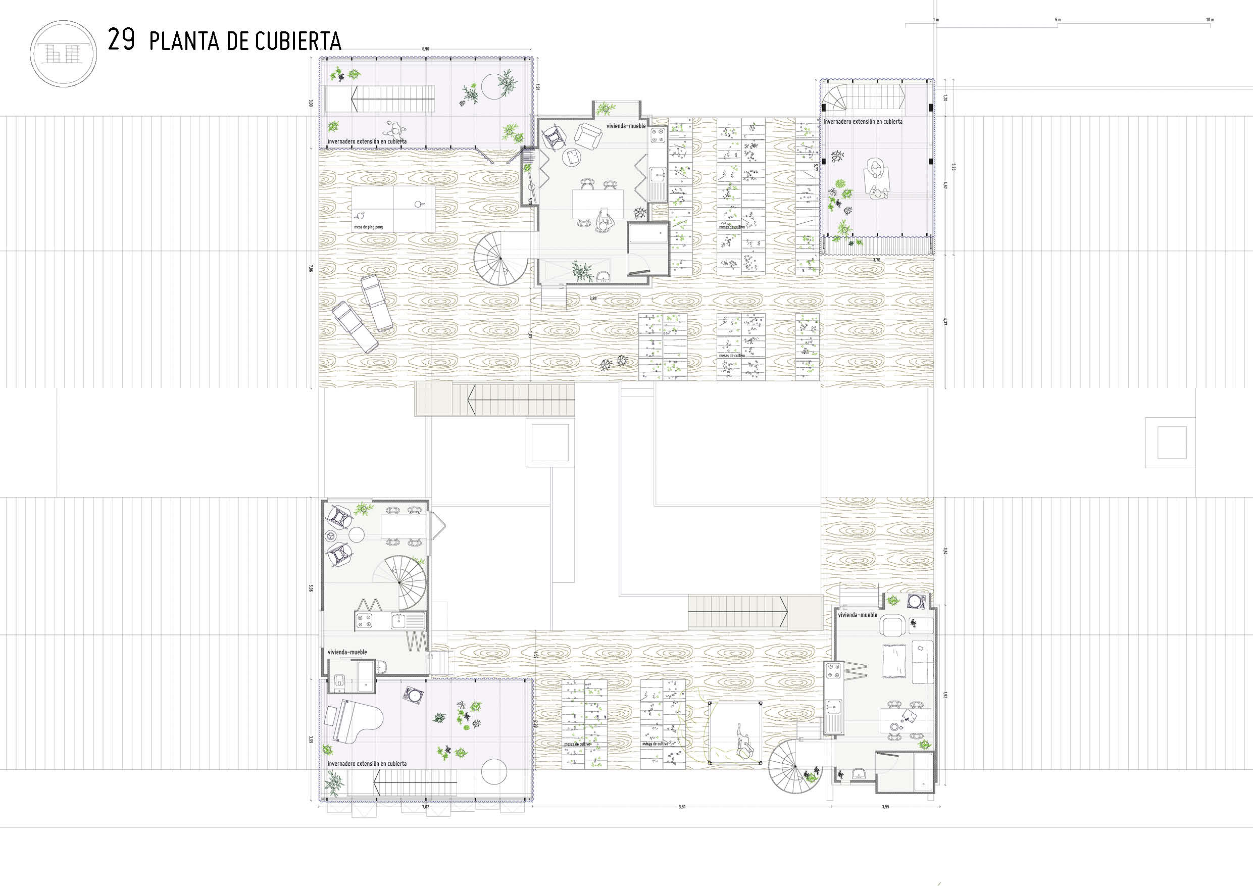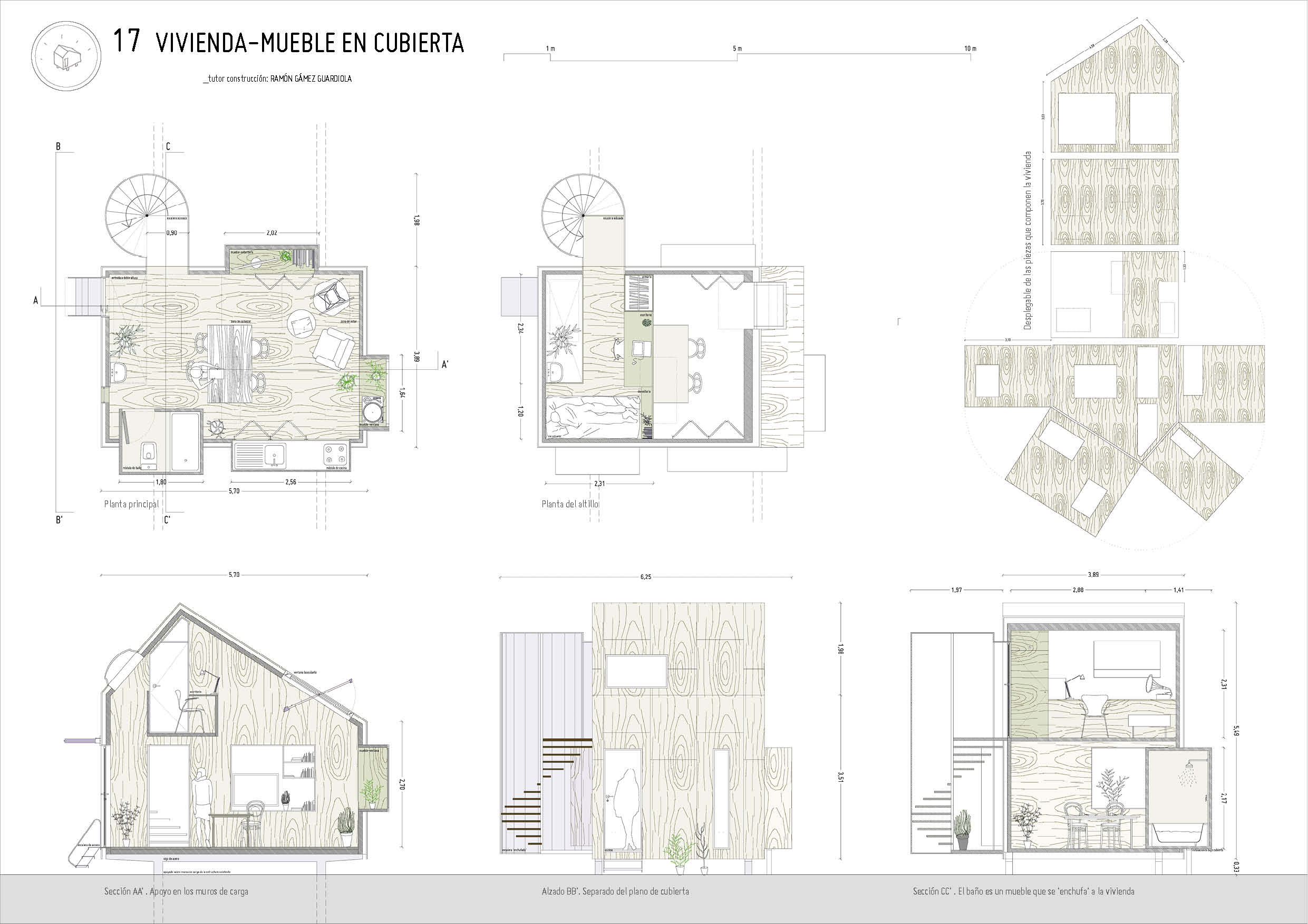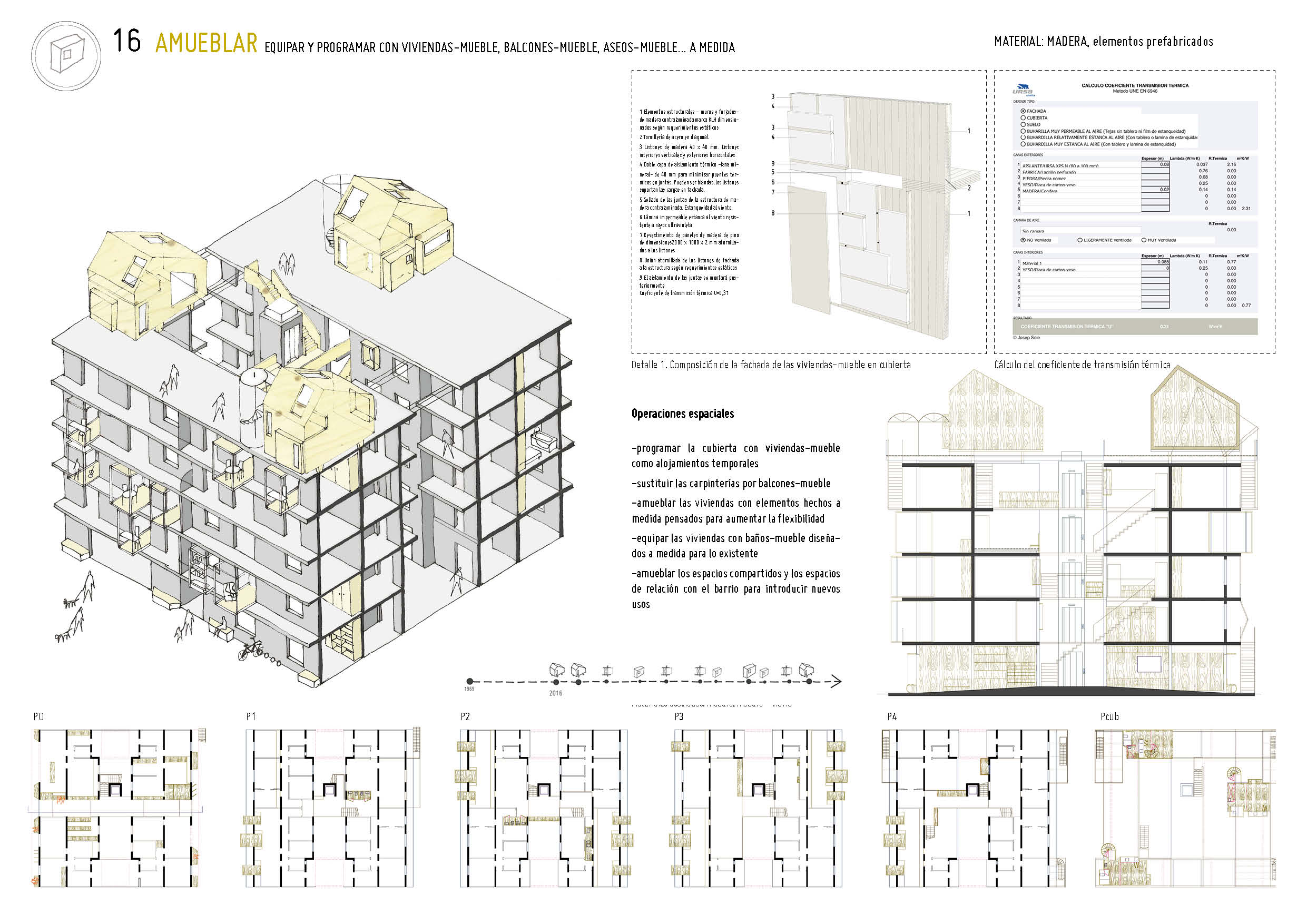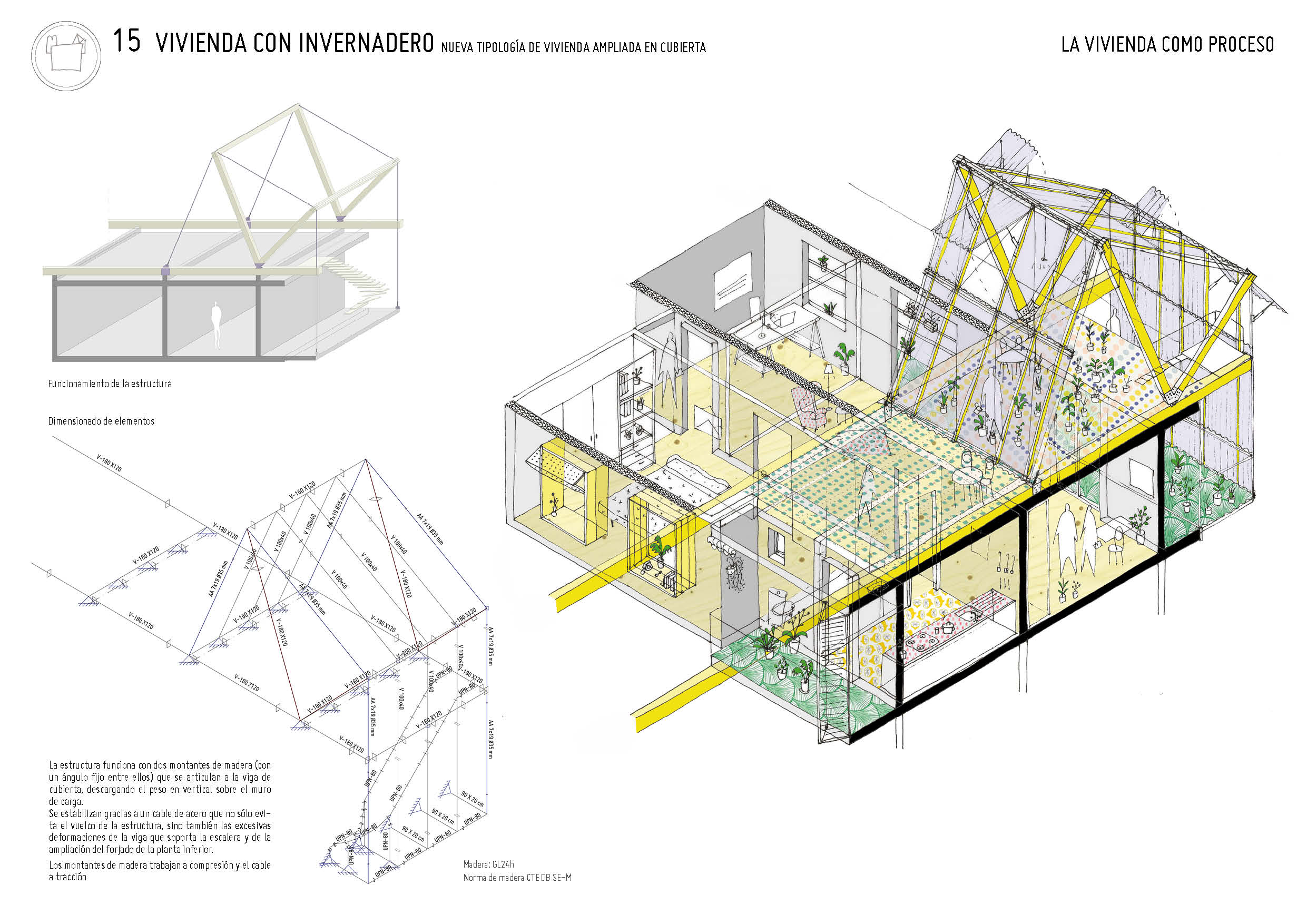 Nueva tipología de vivienda: micro-vivienda temporal en cubierta de madera contralaminada