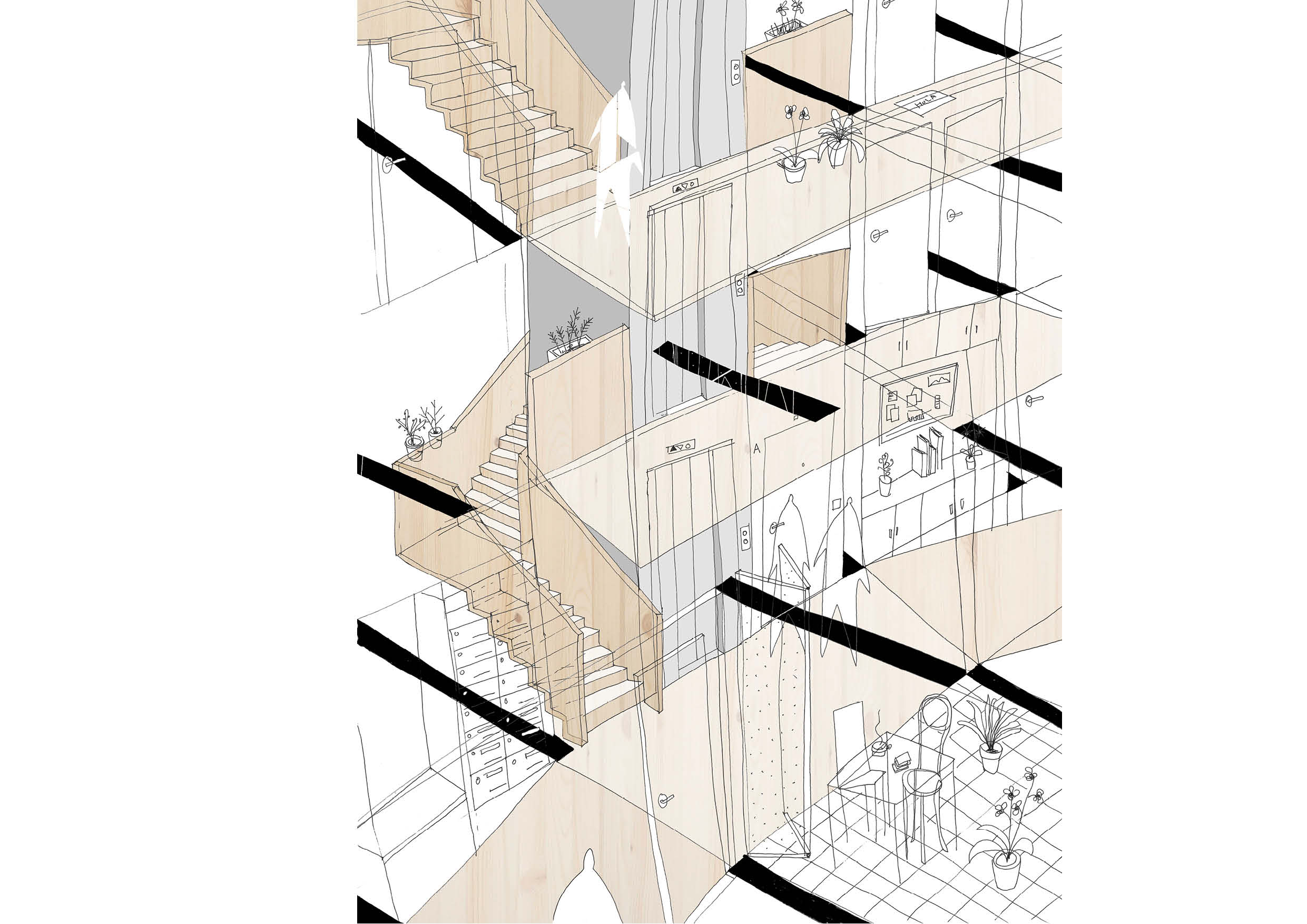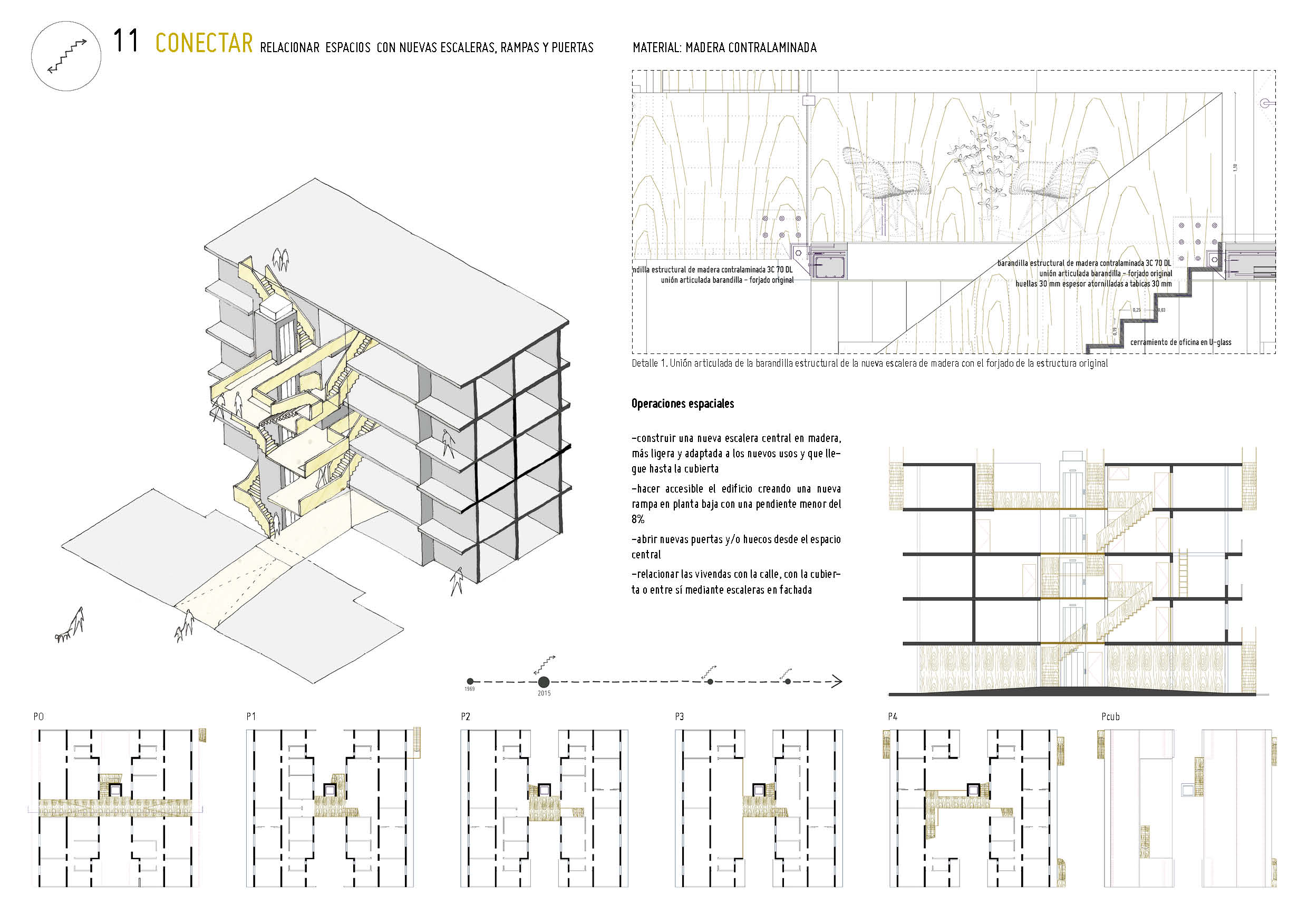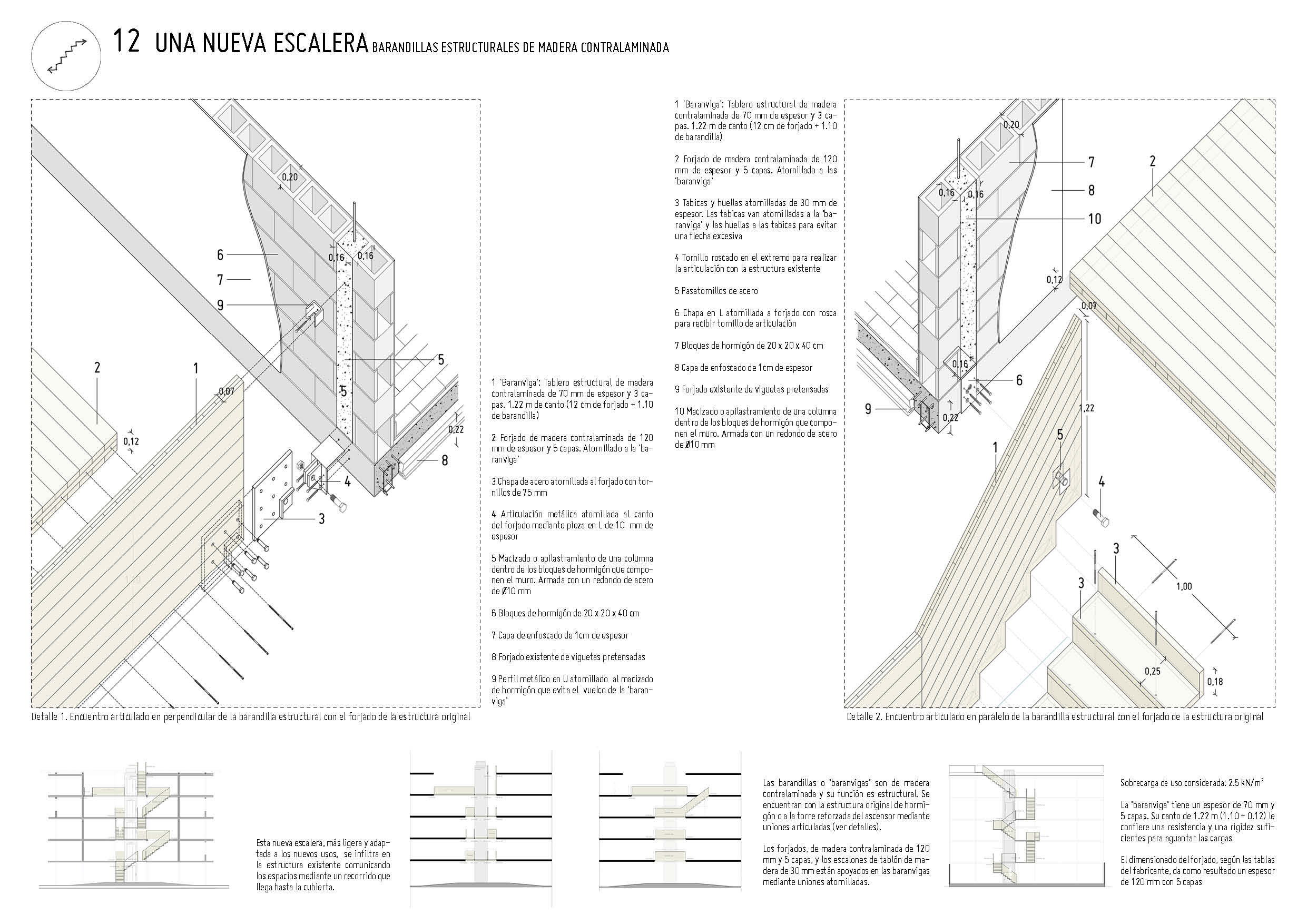 Detalle constructivo de la nueva escalera de madera estructural