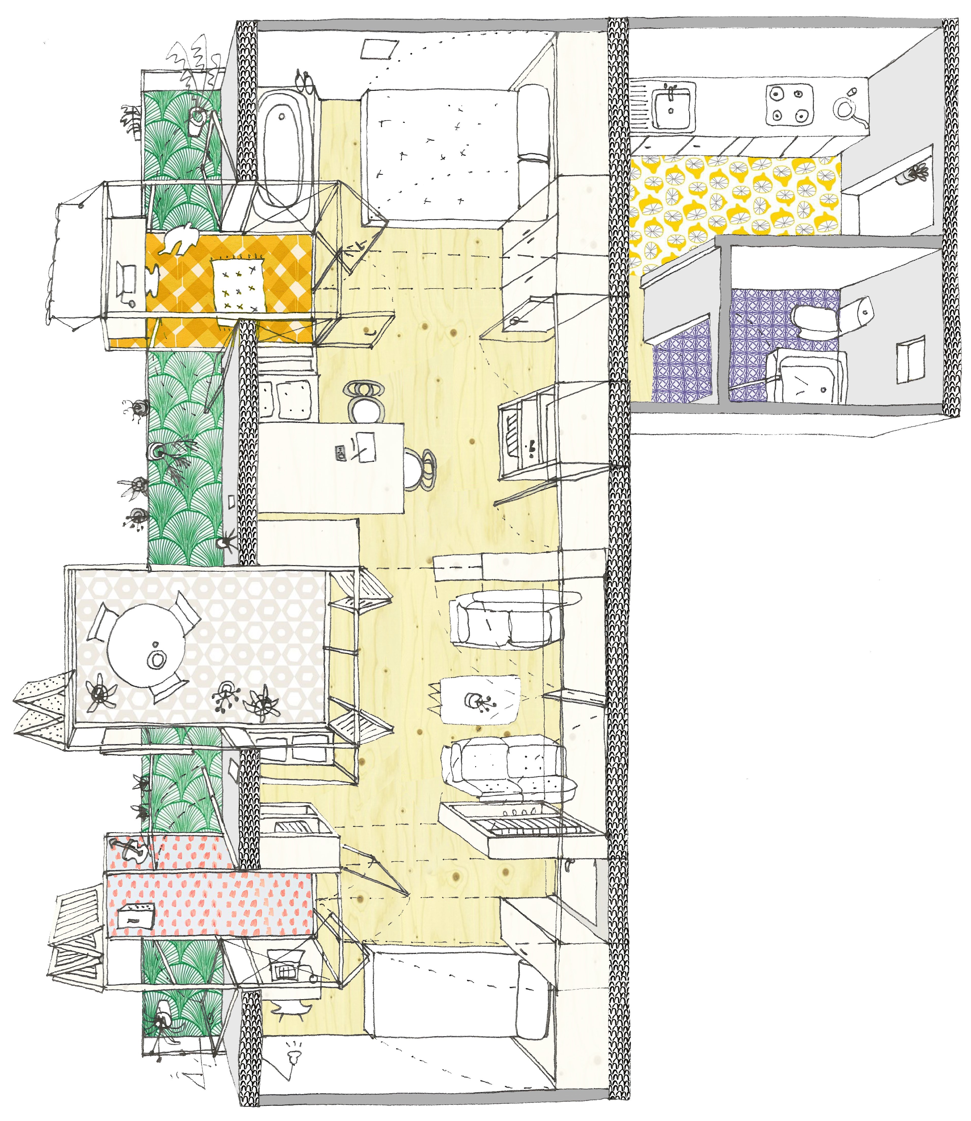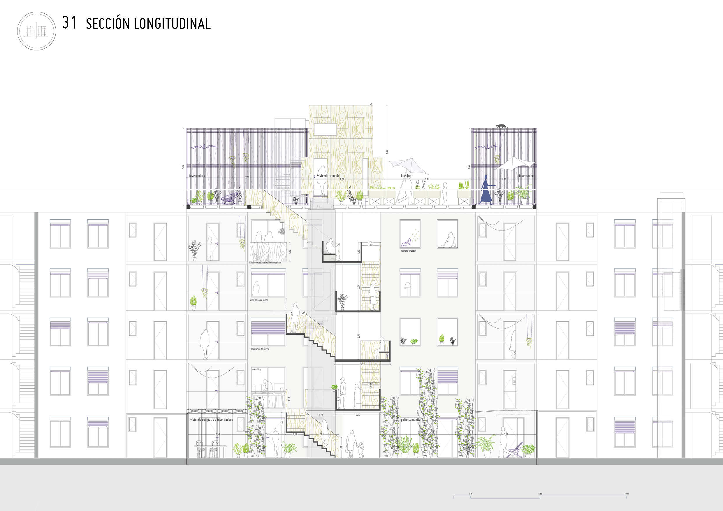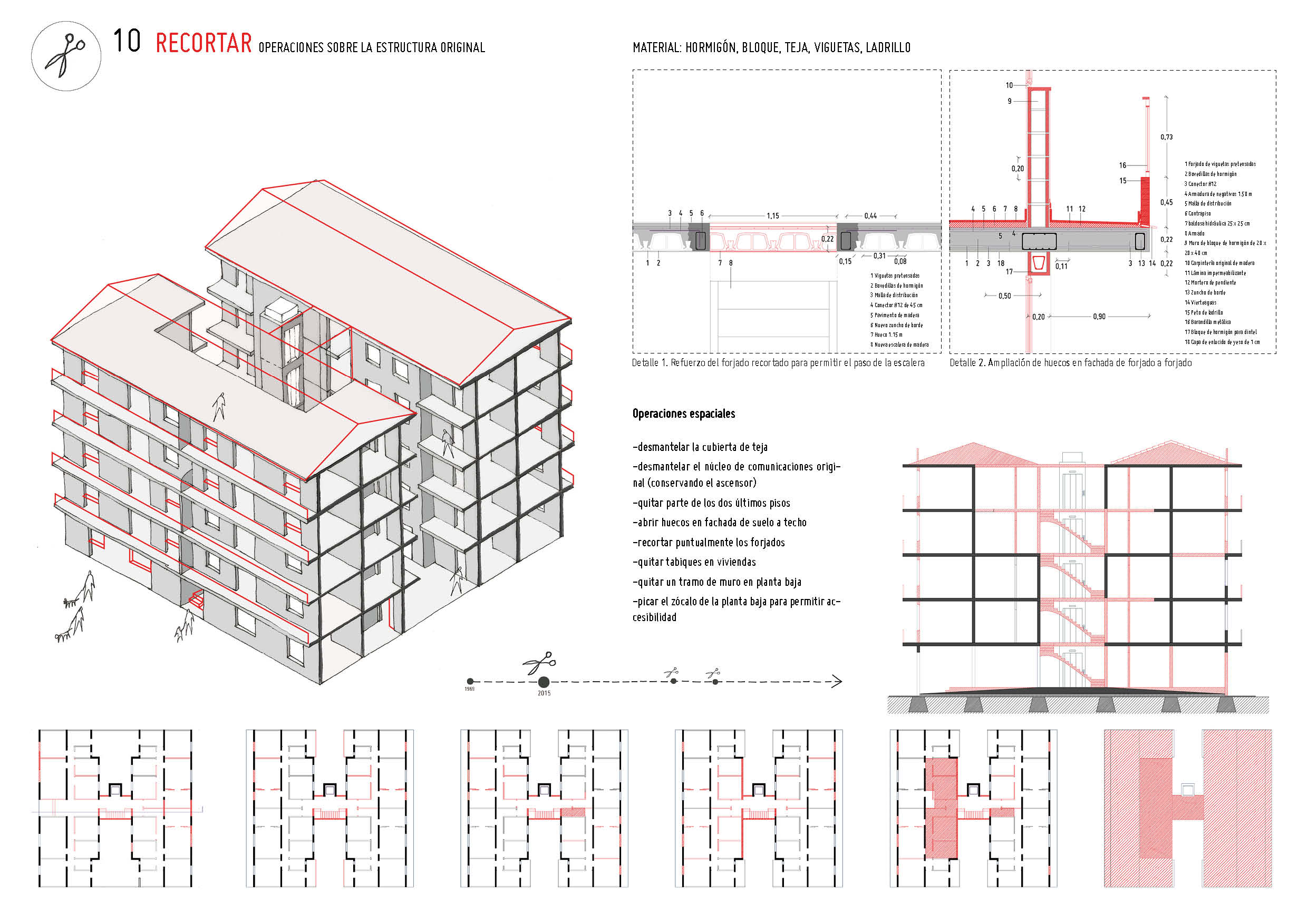 Ejemplo de intervención en una vivienda con la introducción de nuevos espacios intermedios y estrategias de flexibilidad