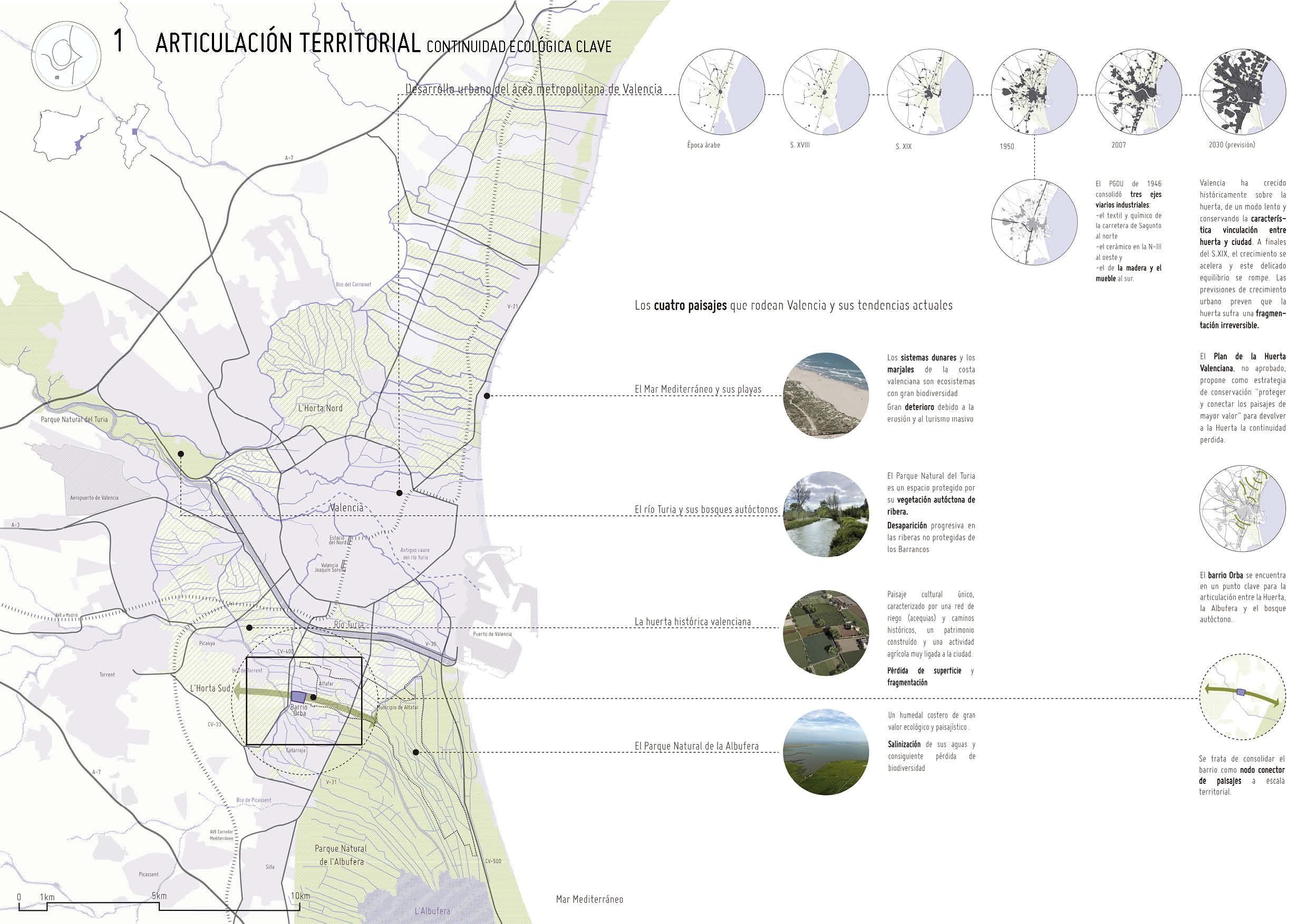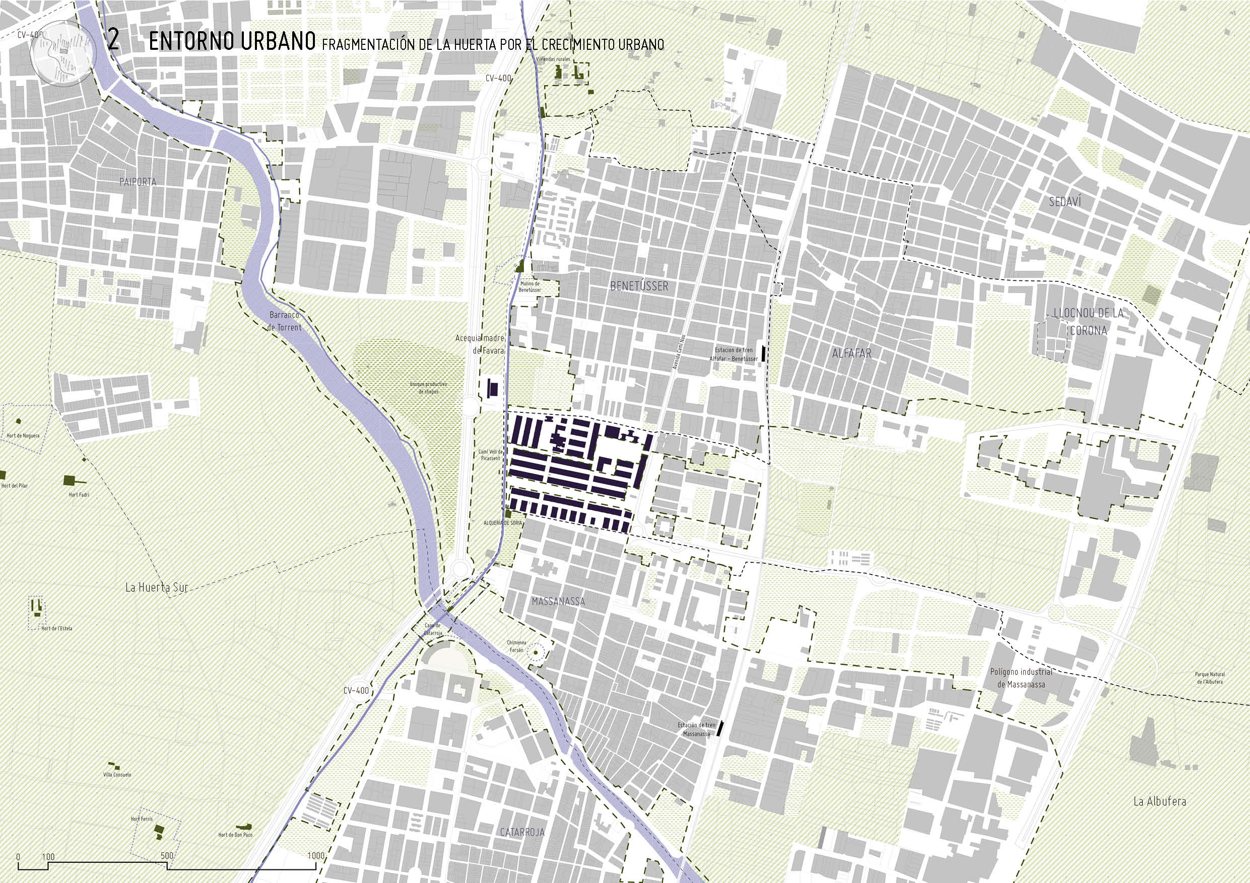 Los cuatro paisajes del entorno. El barrio se encuentra entre la Albufera y la Huerta Sur, en un lugar estratégico para su continuidad