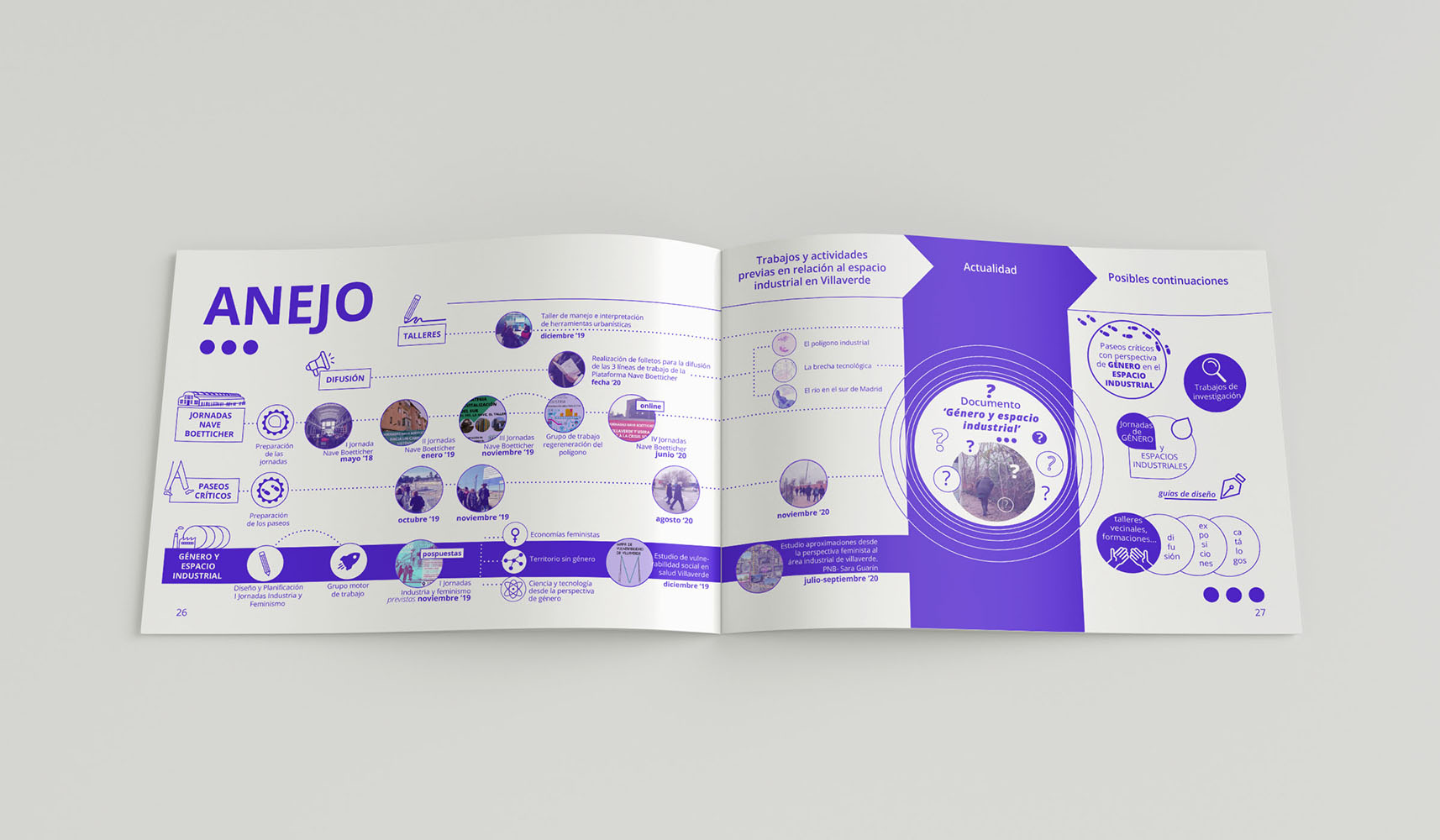 Los trabajos, investigaciones, jornadas y paseos críticos que la Plataforma Nave Boetticher y otros agentes han ido realizando en torno al área industrial y al Distrito de Villaverde confluyen en este documento de preguntas: las que surgen cuando un grupo de mujeres confrontamos un espacio hostil como es el polígono con los diferentes ámbitos y necesidades de la vida y de lo cotidiano. Preguntas que, sobre la base de la observación, permiten ver hasta qué punto el espacio industrial ha dejado de lado todo lo no productivo y vislumbrar posibilidades de mejora en múltiples ámbitos.