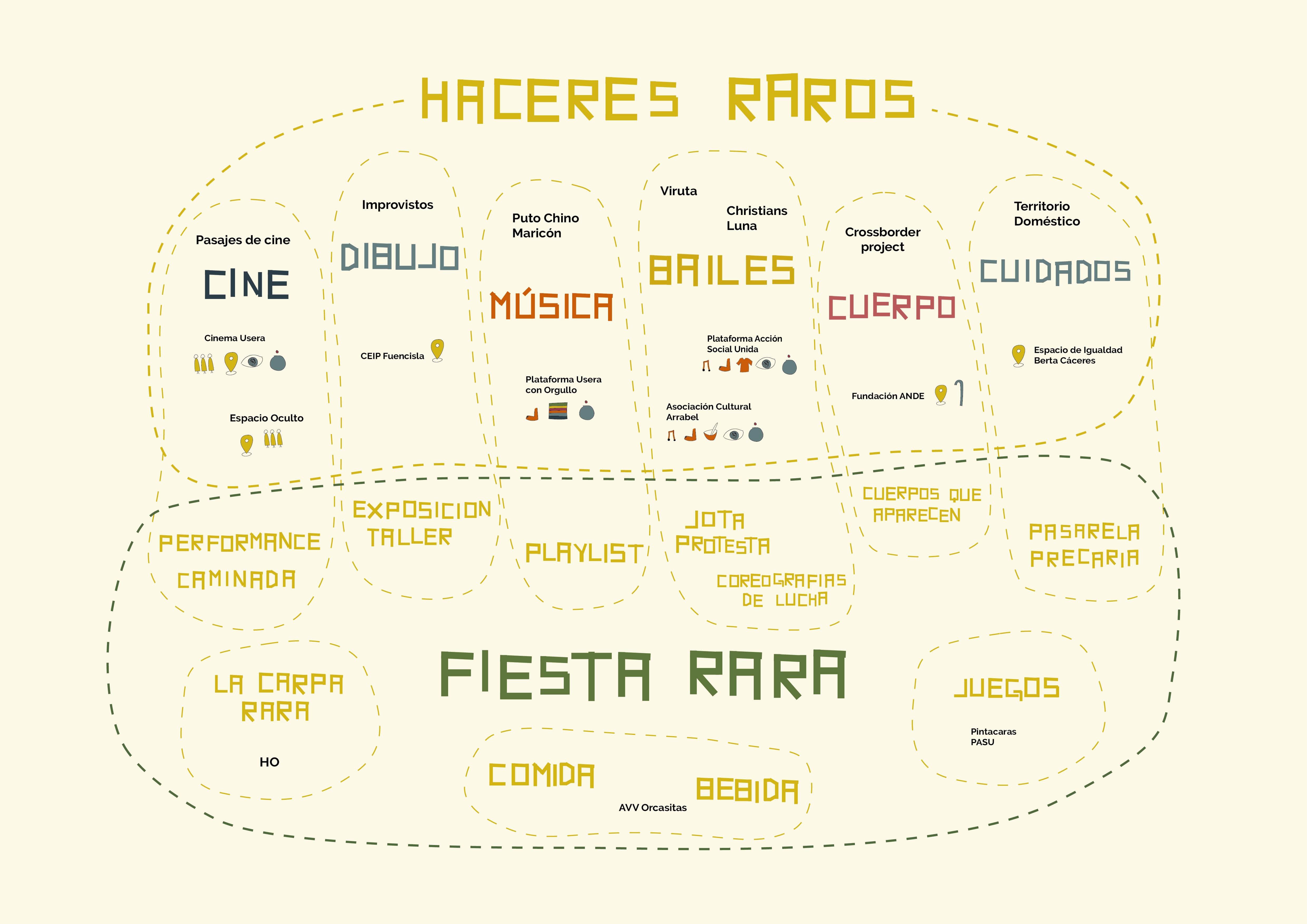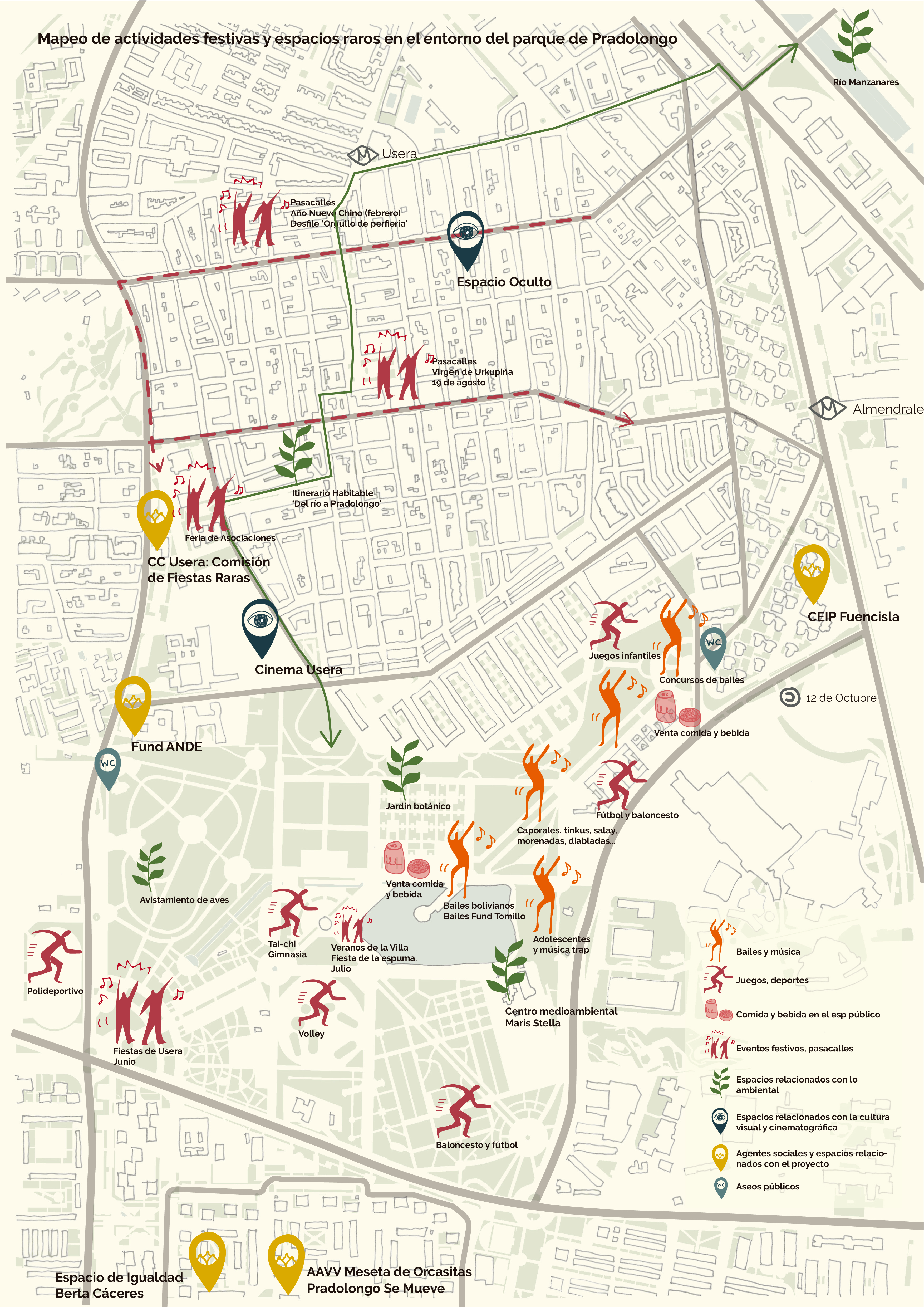 Este proyecto fue realizado desde Traza Territorio en colaboración con Fran Quiroga y Pasajes de Cine en el marco del programa de intervención artística en el espacio público Imagina Madrid entre 2018 y 2019.