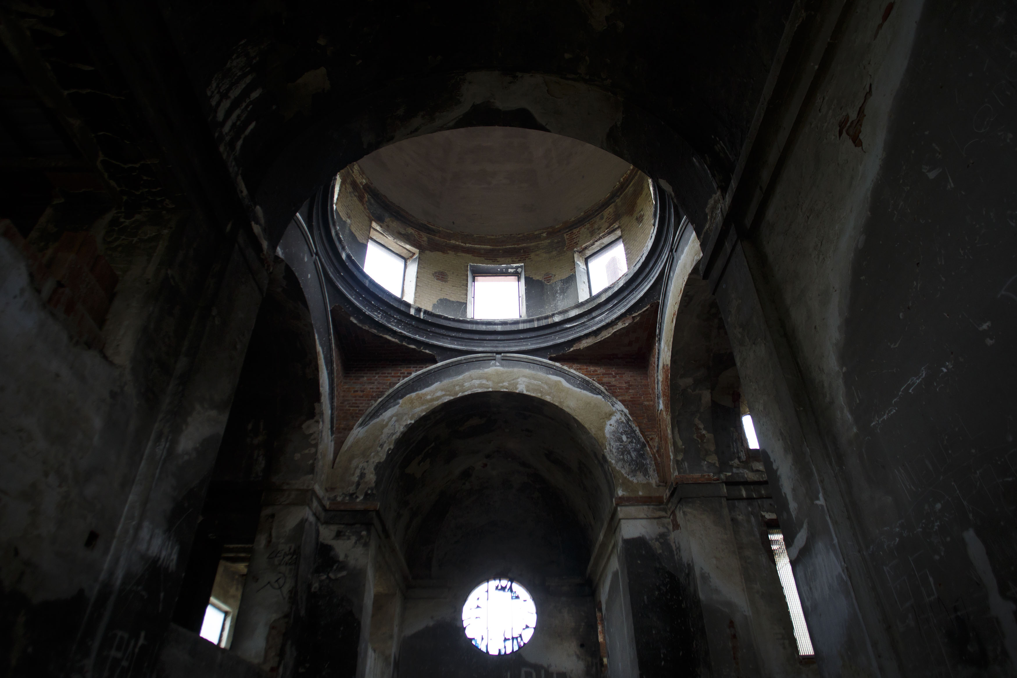 El interior de la iglesia en estado de abandono