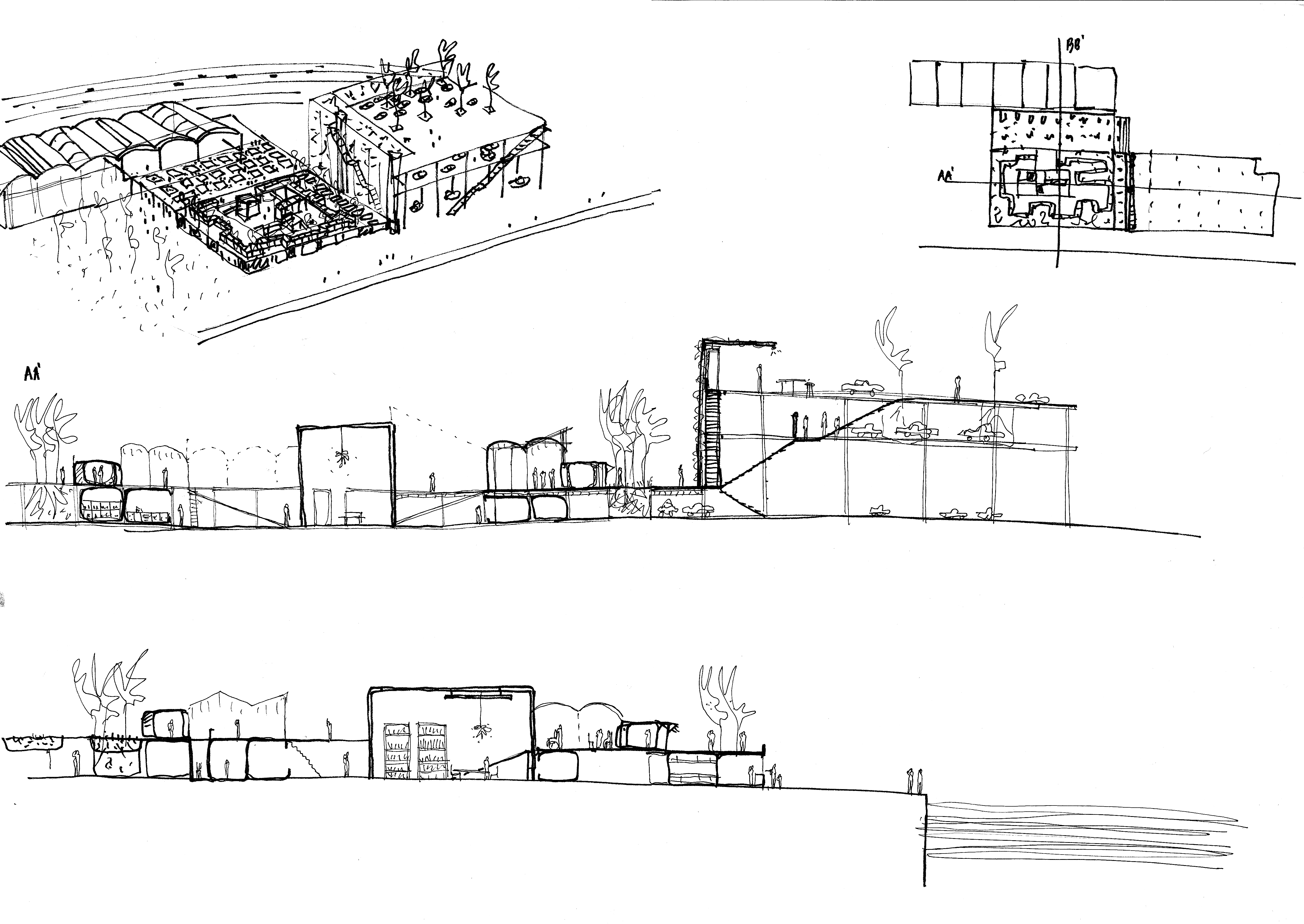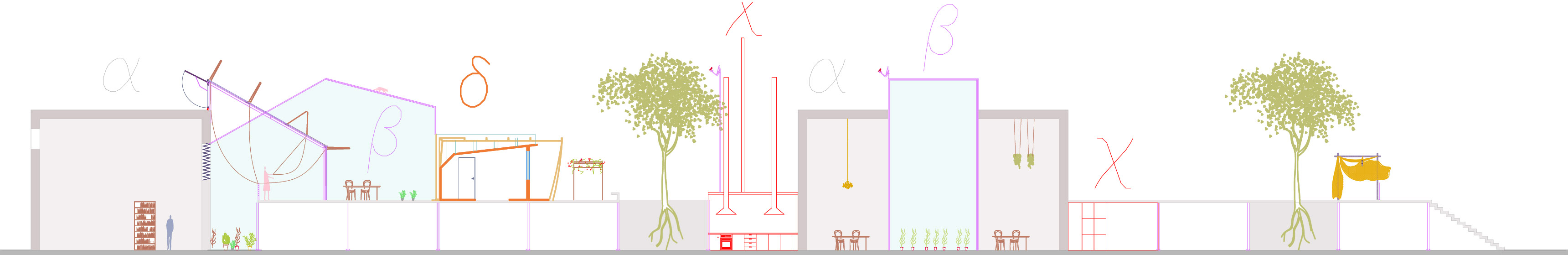 Un edificio como infraestructura, que revela sus diferentes capas con sus distintas características: materiales, temporales, programáticas.