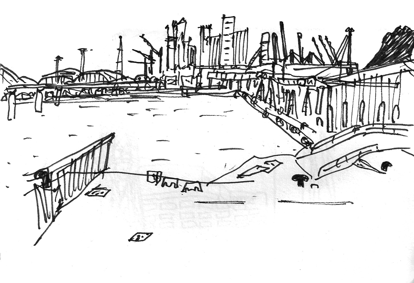 Bajo esa hipótesis traté de dibujar el puerto de Barcelona, donde el enunciado del proyecto proponía crear un centro para personas mayores.