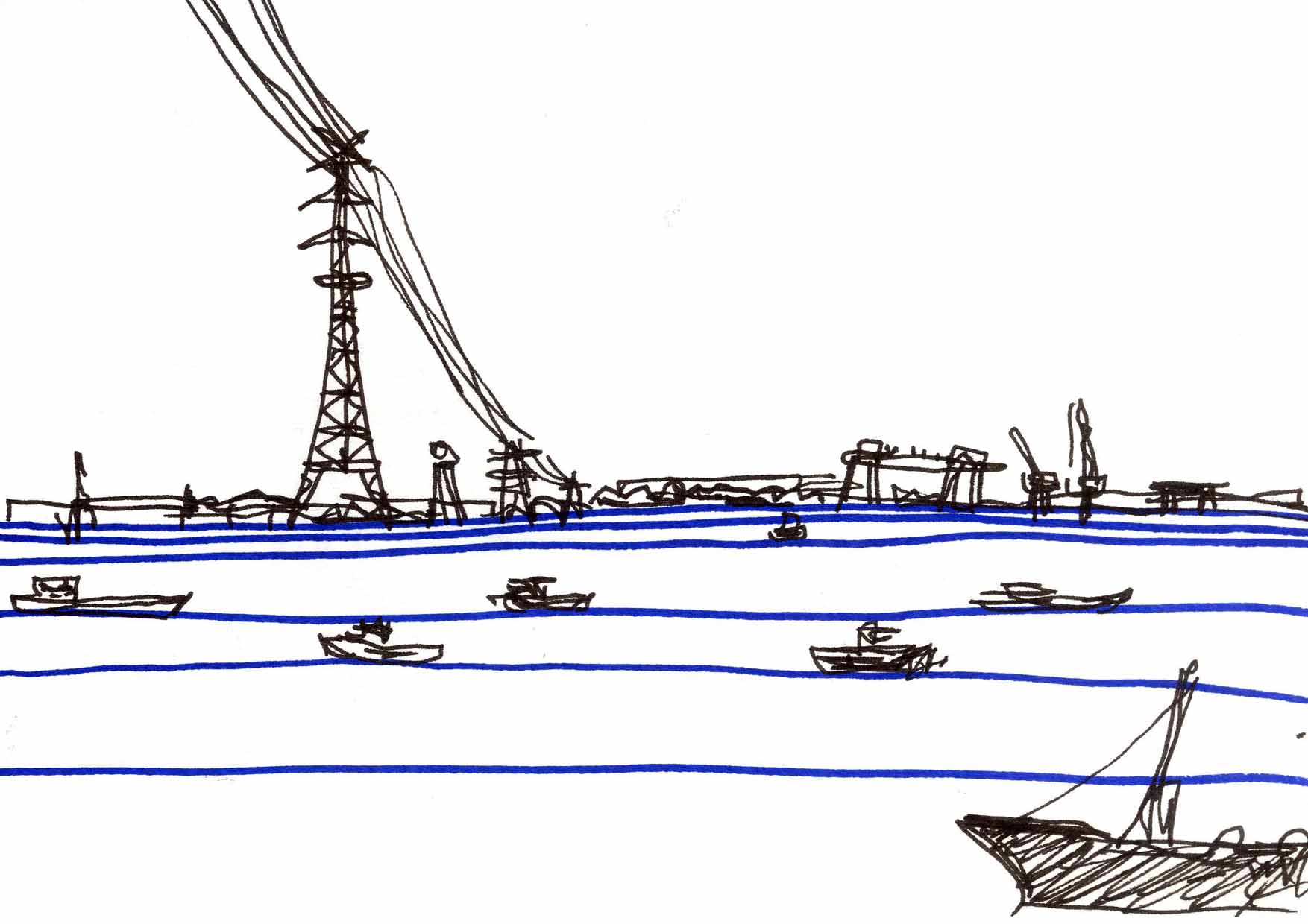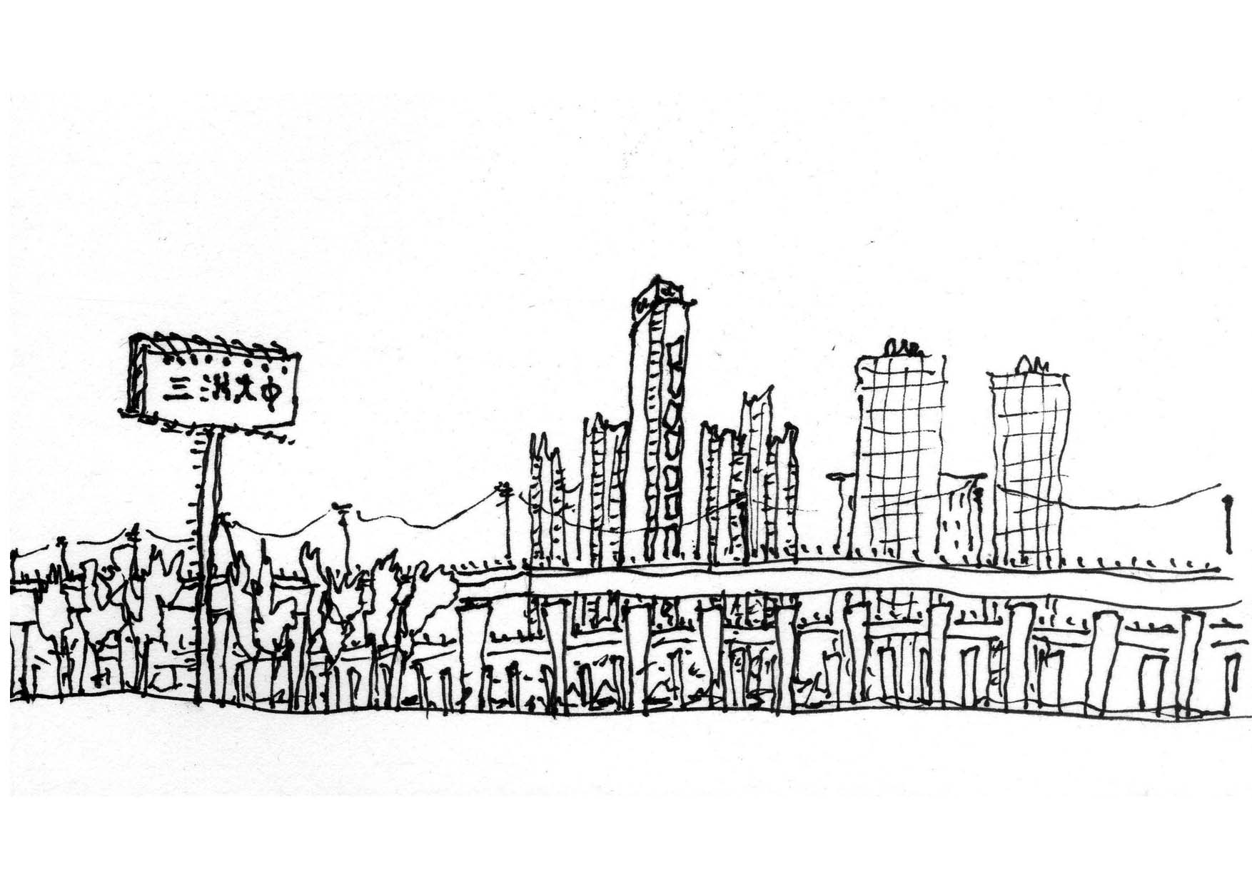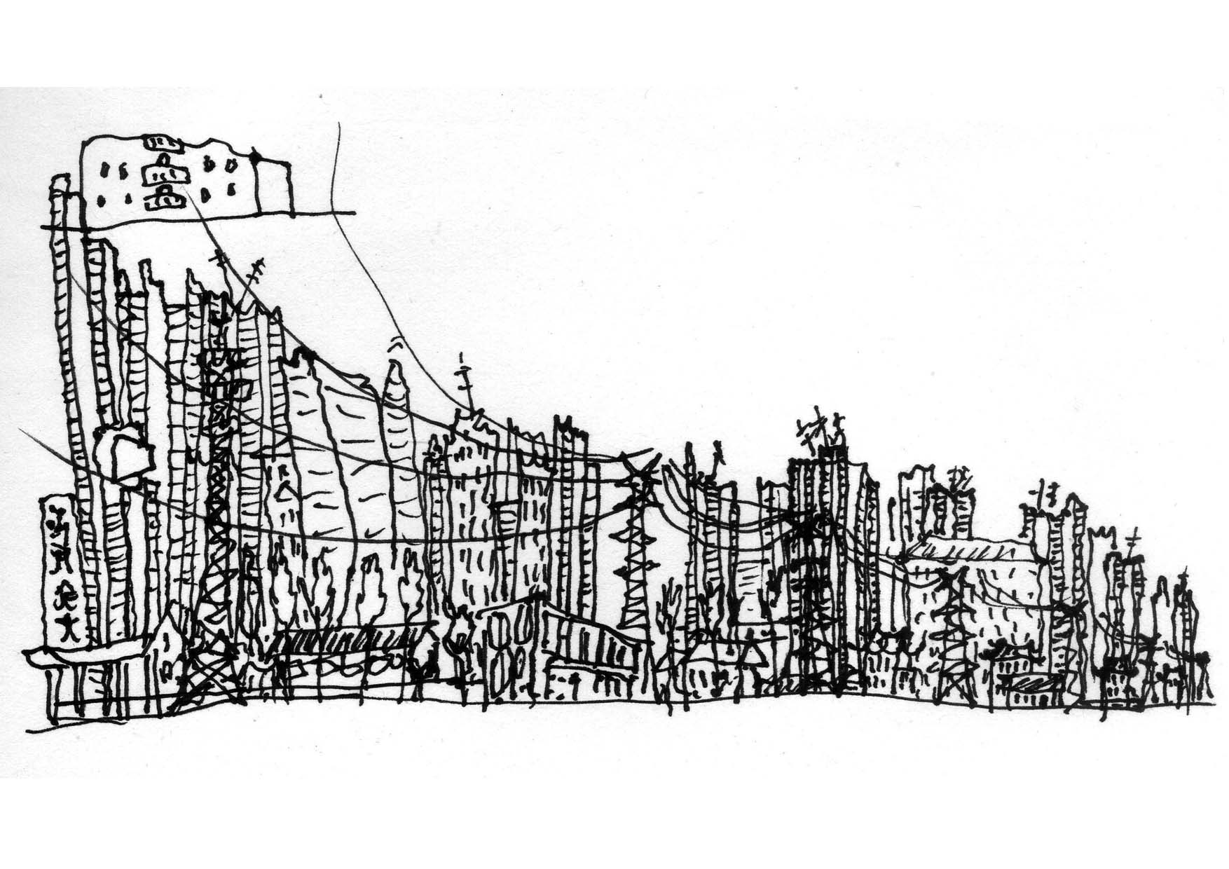 Une ethnographie dessinée de la ville de Shanghai et ses rives, dans le cadre du programme de recherche Image et Patrimoine de l'école d'architecture de Montpellier et le workshop international 'Shanghai, les rives' en collaboration avec la Tongji University